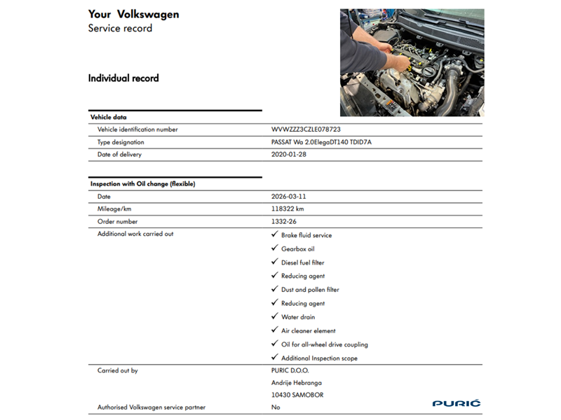 Bosch Car Servis Purić su vodeći proizvođači vozila ovlastili za upis popravaka i održavanja u digitalne sevisne knjižice vozila. To znači da će svaki popravak ili redovito održavanje vozila u našoj radionici moći biti upisan u službenu digitalnu evidenciju jednako kao popravak ili održavanje u ovlaštenoj mreži proizvođača. Ovlašteni ili certificirani servisi unose u zapis datum, kilometražu i ugrađene dijelove čime se osigurava vjerodostojna povijest vozila, zadržava jamstvo i povećava vrijednost prilikom prodaje.